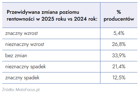 Prognozy na drugie półrocze pozostają umiarkowanie optymistyczne – większość firm spodziewa się dalszego, choć powolnego wzrostu sprzedaży. Jednocześnie zaledwie 5% producentów prognozuje znaczący wzrost rentowności, a co piąta firma przewiduje jej spadek. Rosnące koszty pracy, energii i surowców pozostają największą barierą dla poprawy wyników finansowych.